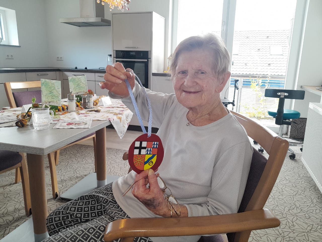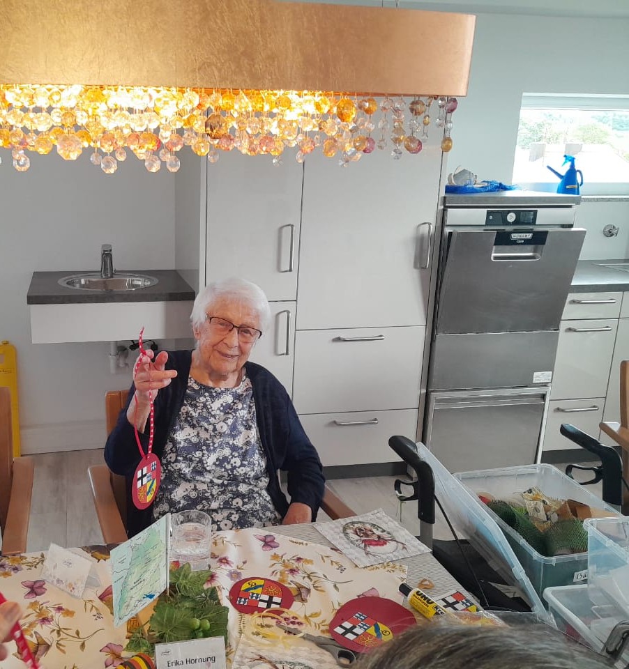 Ein absolutes Highlight für unsere Heimbewohner war am Nachmittag der Beschäftigungspunkt. Es wurde das Gundelsheimer Wappen ausgeschnitten, ausgemalt und als Medaille zusammengebastelt. Alle hatten hier viel Freude Ihre Heimat bildlich zu gestalten.