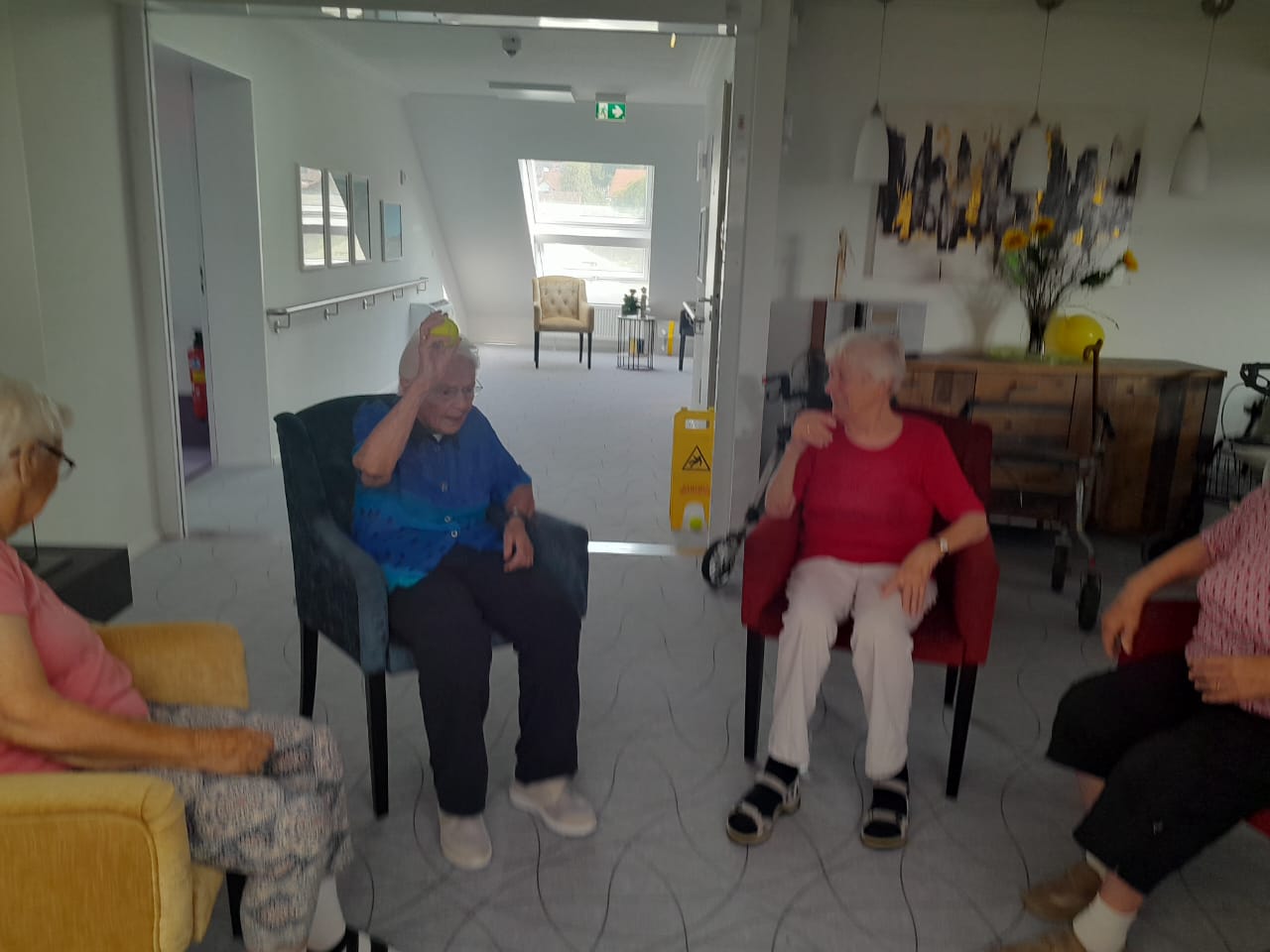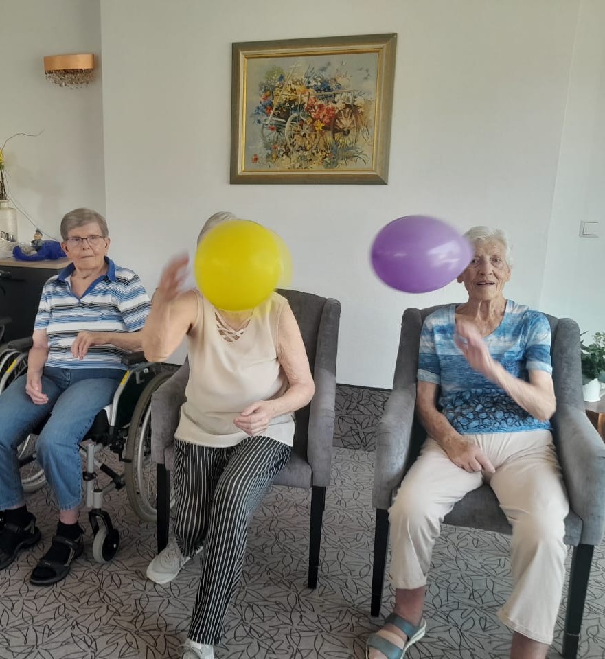 Mit ganz viel Freude, Lachen und Witz bestritten unsere Heimbewohner ihren bewegten sportlichen Vormittag. Hier wurden auch die einzelnen Reflexe und Kraft in den Armen und Beinen trainiert. Egal ob mit einem Tennisball, mit einem Luftballon oder einem Gummiball alle hatten schrecklich Freude und entwickelten ihren inneren Ehrgeiz.